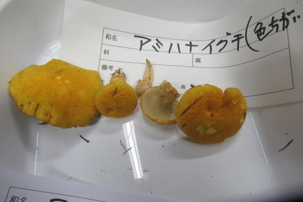 | アミハナイグチに形態は似るが傘色が違います。 傘表面はぬめりなし 未同定 |